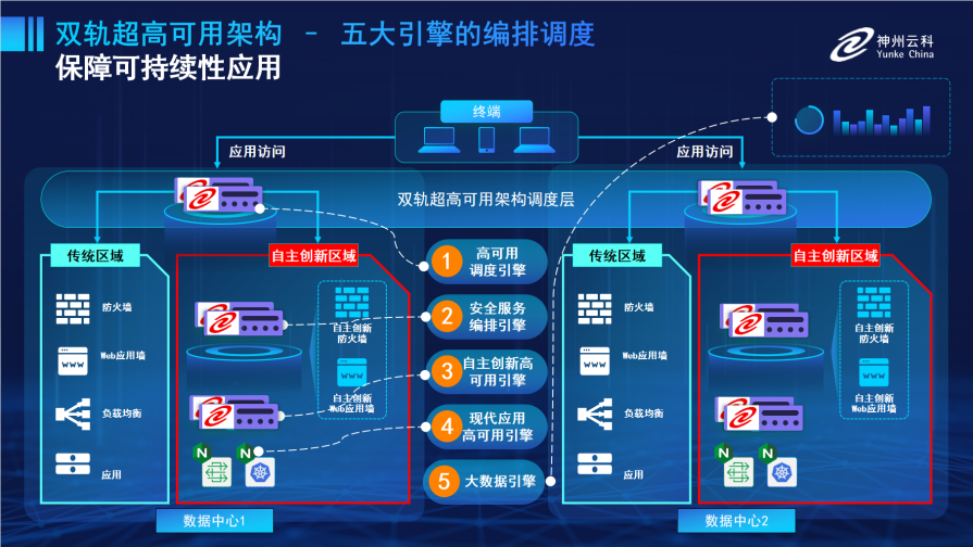 为满足数据中心双轨建设信创区和非信创区跨域协同,开元网页版-开元(中国) 通过5大引擎实现双区无缝切换,跨域协同。