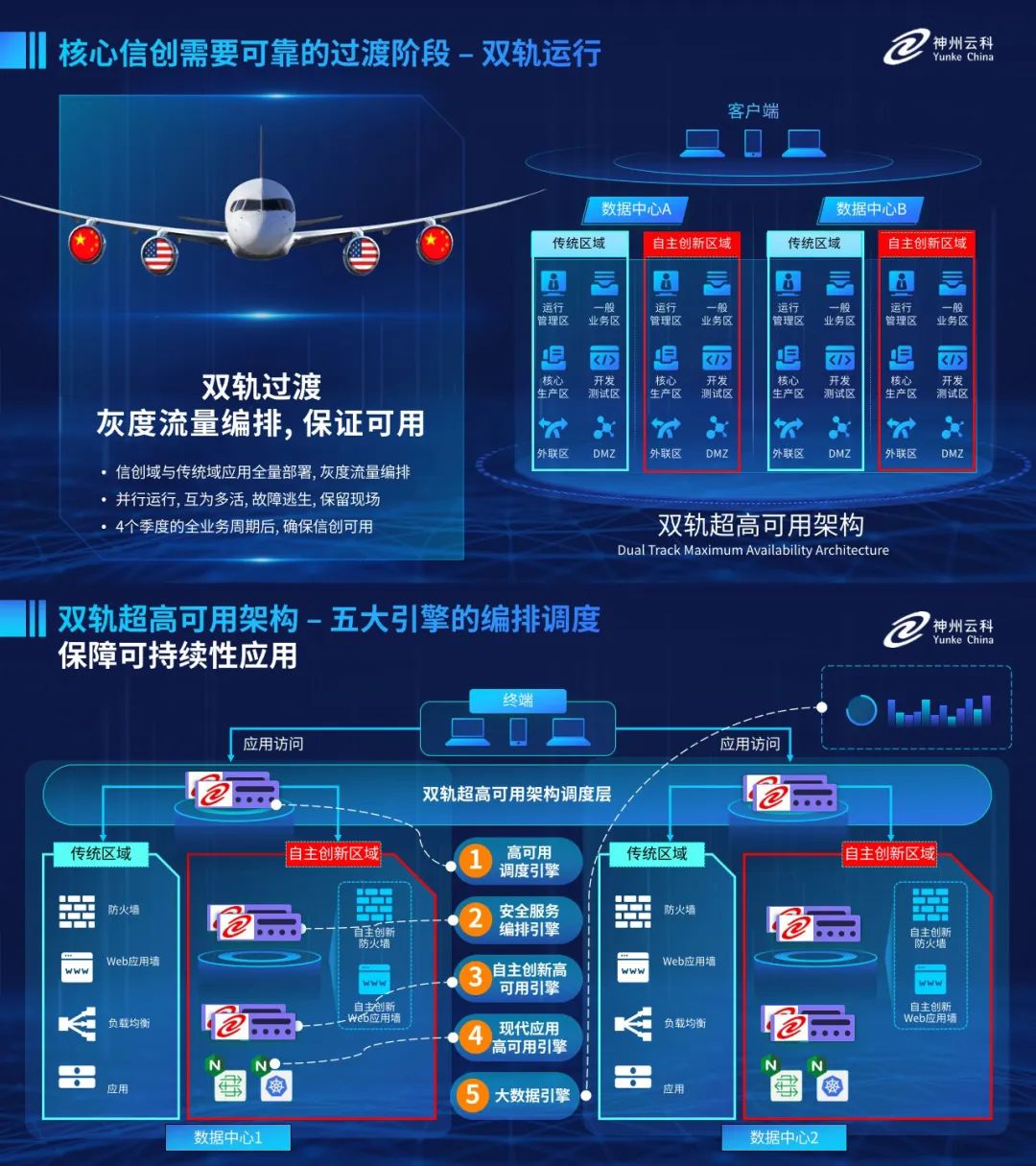 为助力金融业务高质量发展,更好地应对数字经济时代对可持续性的高要求,实现“信创”与“数字化”齐头并进,开元网页版-开元(中国) 创新性的推出了核心信创·双轨过渡的超高可用架构。该架构在双活数据中心的分区调度基础上,增加信创域和非信创域的分域调度,实行信创域与传统域应用全量部署,使双中心运营变为双中心四区域并行运行,互为多活,将“0到1”的单轨建设道路变为分区分域协同的多活双轨超高可用架构。帮助客户在新架构下,保障“信创”的同时解决性能瓶颈,提升稳定性,保证应用可持续性,最终实现信创区域和非信创区域的平滑过渡,完成国产化替代目标。